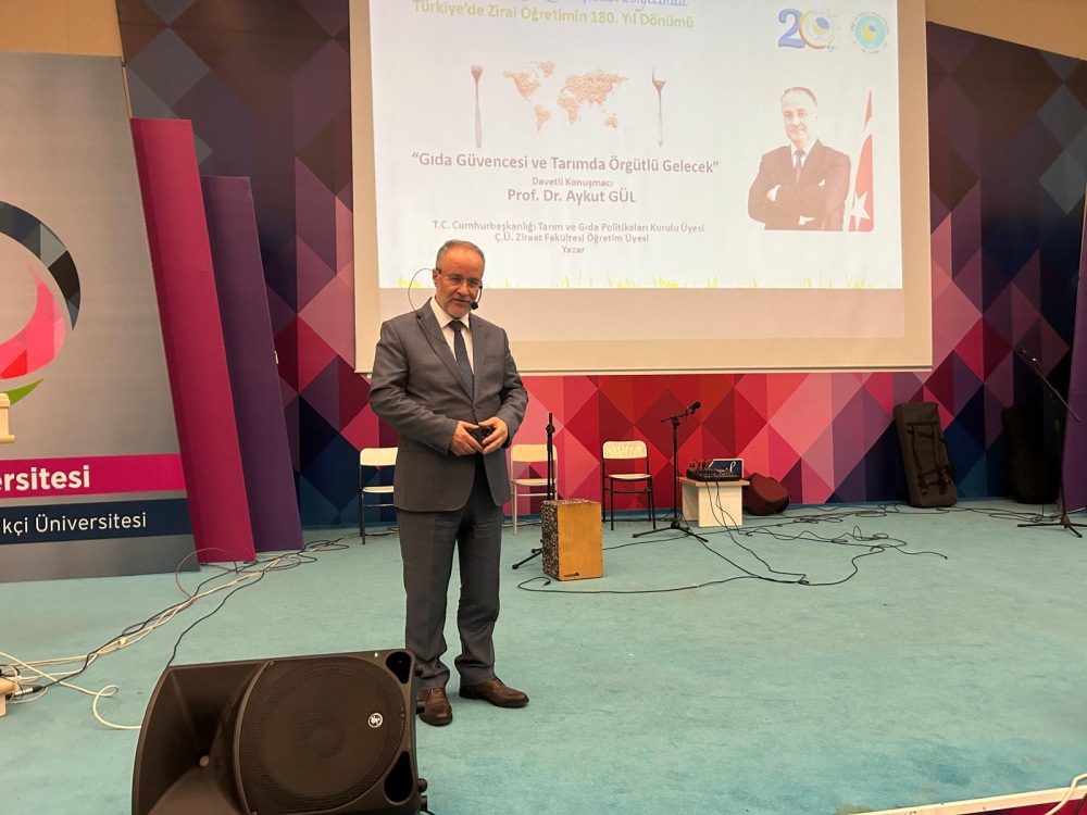 Following the opening speeches, Prof. Dr. Aykut Gül, who participated in the program as a guest speaker, stated in his presentation titled “Food Security and an Organized Future in Agriculture” that food has been one of the most fundamental factors determining the fate of states and societies throughout history. Gül noted that food security today ranks as high a priority as energy and defense, and often even higher, emphasizing that Turkey is a major player on a regional and global scale thanks to its food production capacity and logistical strength. He also pointed out that agriculture has become a tool of “agricultural diplomacy.”